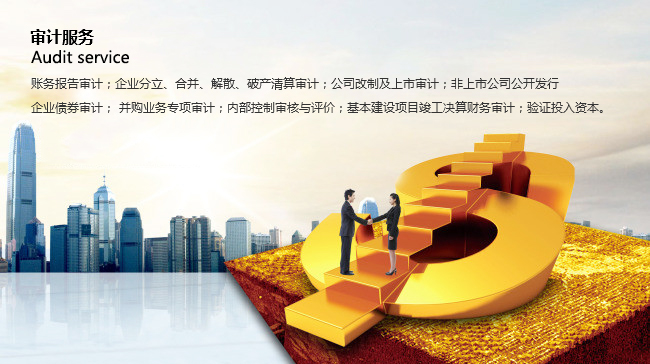 审计服务——账务报告审计;企业分立、合并、解散、破产清算审计;公司改制及上市审计;非上市公司公开发行企业债券审计; 并购业务专项审计;内部控制审核与评价;基本建设项目竣工决算财务审计;验证投入资本。