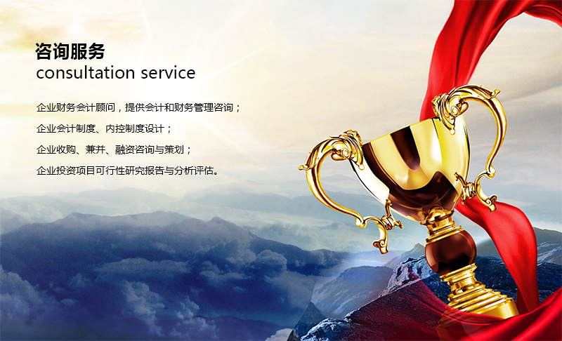 咨询服务——企业财务会计顾问,提供会计和财务管理咨询;企业会计制度、内控制度设计; 企业收购、兼并、融资咨询与策划;企业投资项目可行性研究报告与分析评估。